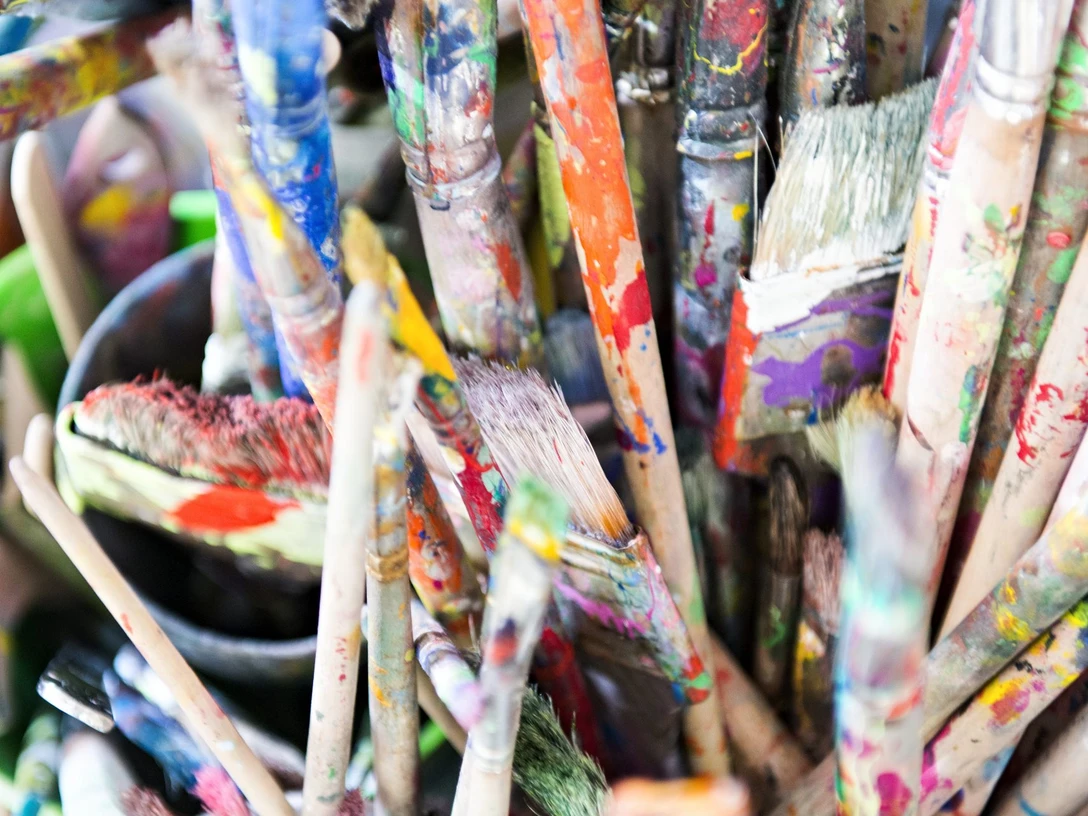 Material ist reichlich vorhanden. Wer auf Leinwänden arbeiten möchte, müsste diese bitte selbst mitbringen.